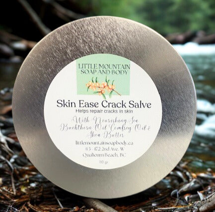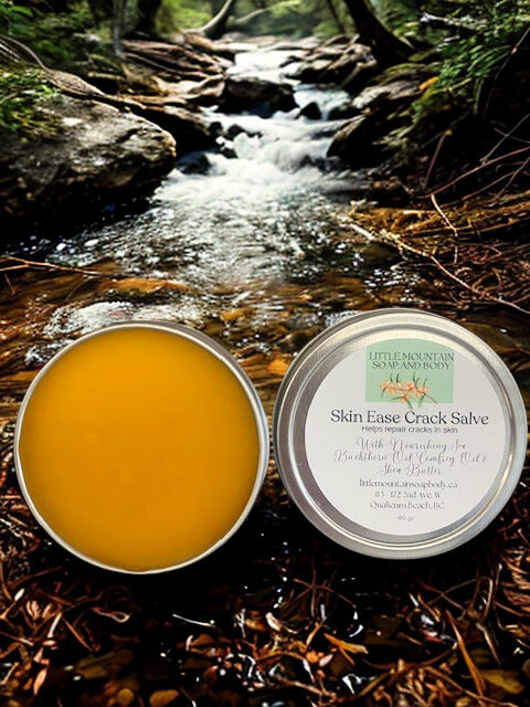 Deeply moisturizing, this salve is designed to penetrate deep into the skin on your hands and feet, perfect those those irritating cracks in your skin. Sea Buckthorn Oil is one of the most nutritious and beneficial oils you can use on your skin. It is loaded with Carotenes (giving it the lovely orange colour), Vitamins A, C, E and dozens of micronutrients. Comfrey oil soothes, calms and helps repair irritated skin. You will notice immediate results as this salve will not only help repair minor cracks but soften and moisturize thanks to the added Shea Butter and Rice Bran Oil. Comes in a handy tin. P