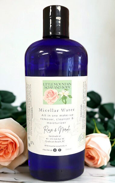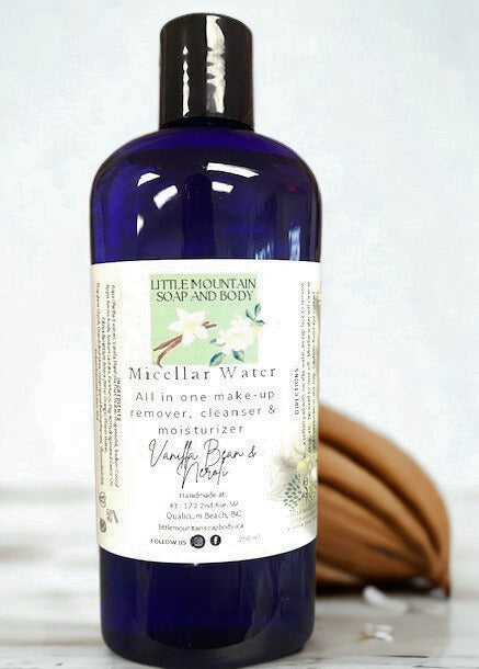 Micellar water works like a magnet to attract dirt, oil and make-up. Our premium micellar water will Ieave your skin feeling clean and soft and the best part is there is no need to rinse it off! Our micellar water contains essential oils, apple amino acids, panthenol, floral waters and other skin loving ingredients to pamper your skin while removing the day's grime. Available in calming Lavender, Luscious Honeysuckle, Uplifting Rose Geranium, delicious Vanilla and Neroli, Rose Neroli and invigorating Peppermint/Tea Tree which is great for oily and/or acne prone skin.