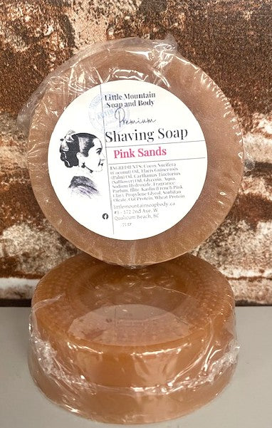 A good shaving soap needs to have great slip and lather for a smooth shave and be moisturizing all at the same time. Our shaving soap provides these qualities plus has the conditioning benefits of wheat and oat protein making this shaving soap a wonderous thing! We've added Canadian glacial clay to give even more slip (French pink clay in the pink sands version). Lightly scented in various scents. 75 gr