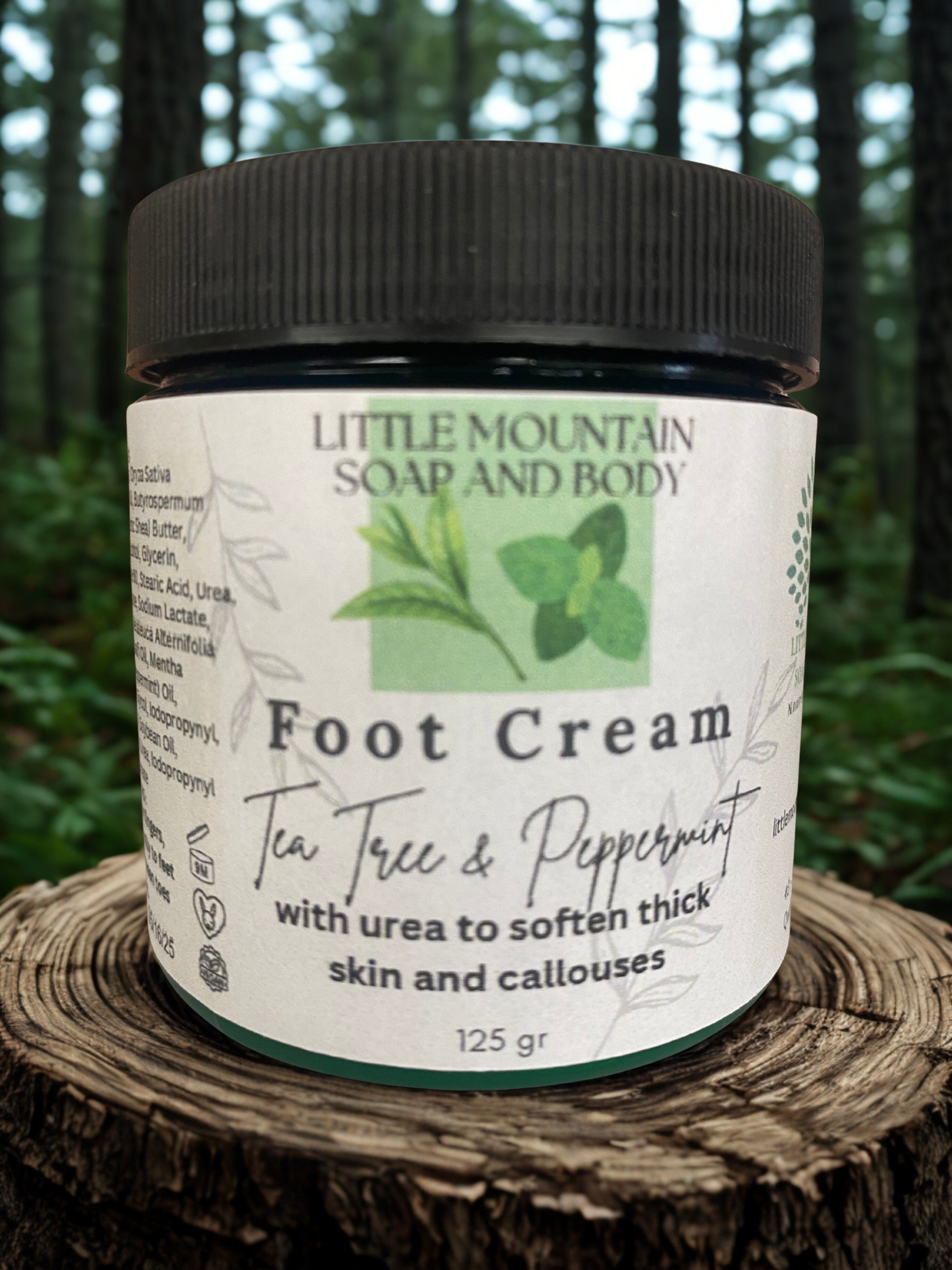 This isn't your average drug store foot cream. Our luxurious Foot Cream is a rich blend of deeply nourishing ingredients designed to revitalize and hydrate even the driest skin. Infused with urea, this cream works to soothe and soften the thick skin on the feet. The organic shea butter and rice bran oil provide intense moisture, locking it in for long-lasting softness. This cream is designed to be thick and deeply penetrating and really stick to your feet.