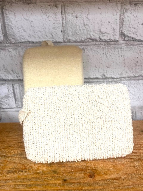 This Terry Cloth Sponge features a mild, rough exfoliating side as well as a soft and smooth side giving you both options! A lovely sponge for your bath and shower routine! 6" x 3.75"