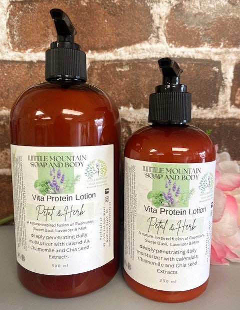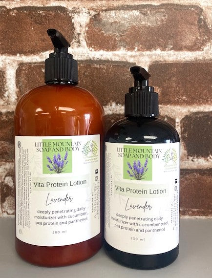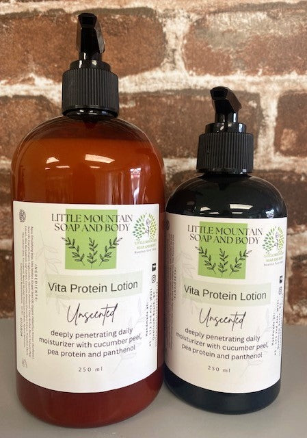 Unlock the secret to radiant, well-nourished skin with our Handmade Vita Protein Lotion. These lotions are not your average cheap drug store variety. Our lotions contain oils that your skin craves, extracts to boost your skin's health and hydration and antioxidants to protect from everyday stresses. 🌸